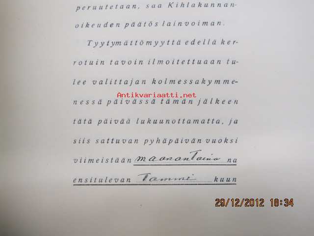 22 x 36 cm oikeudenkäyntiasiakirjat. ... talo, Sukevan kruununpuisto, Läytäkangas