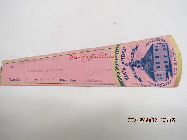 Rauman I:nen Apteekki - Kanta Apteekki, Rauma, 4.1.1947 -apteekkisignatuuri
