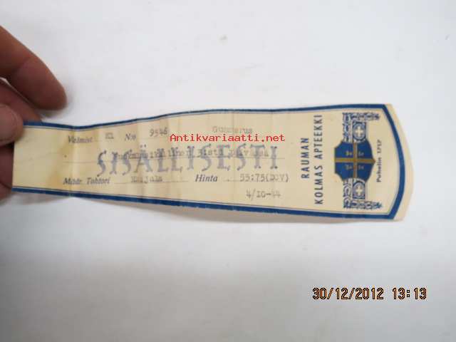 Rauman kolmas apteekki, Rauma, 4.10.1944 -apteekkisignatuuri