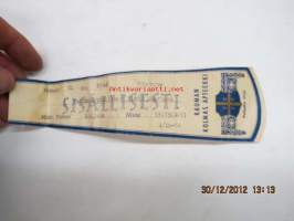 Suomen Joutsen - Valtameripurjehtija -purhehduksilla mukana olleen merkki, kangaspohjalle metallilangalla kirjailtu