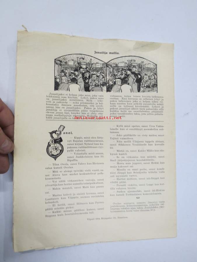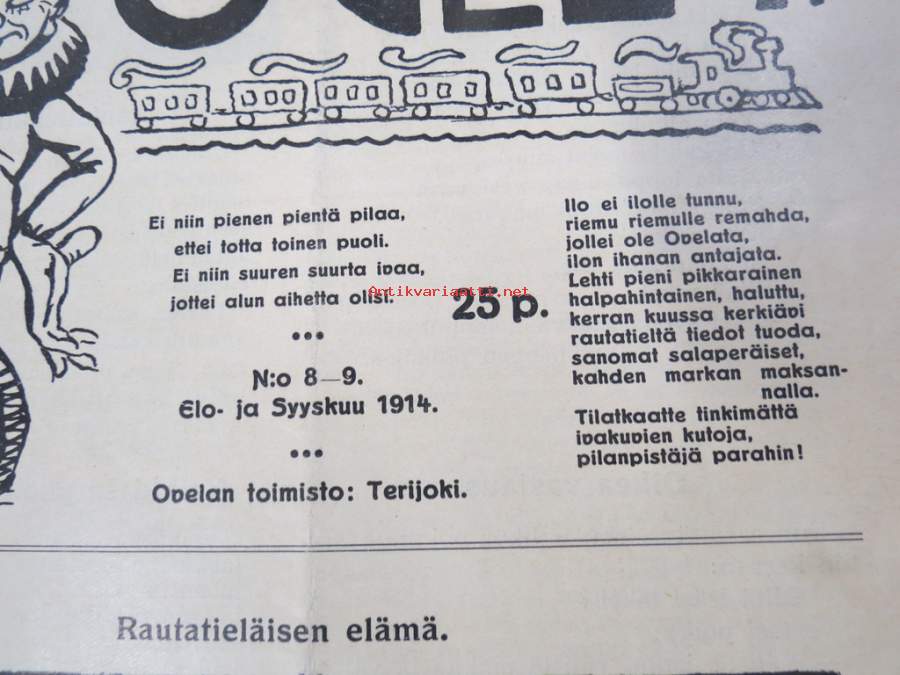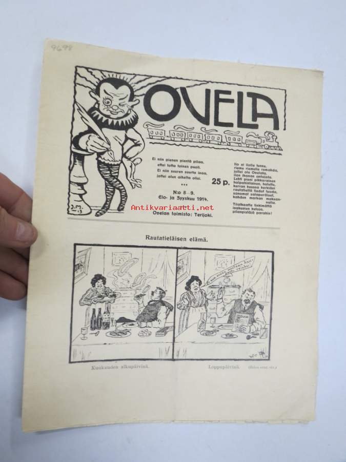 Ovela 1914 nr 8-9 -rautatieläisaiheinen pilalehti, ilmestynyt Terijoella