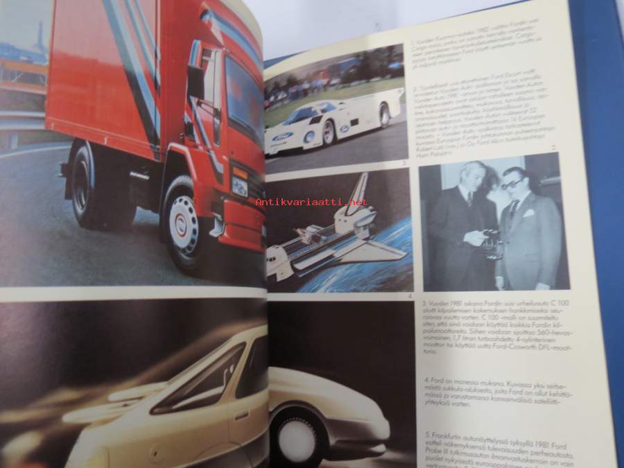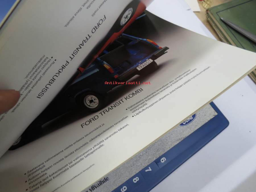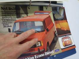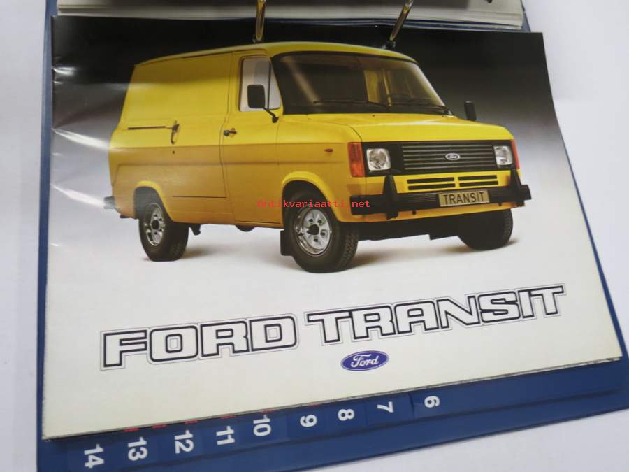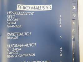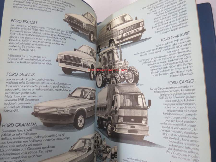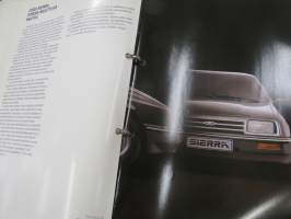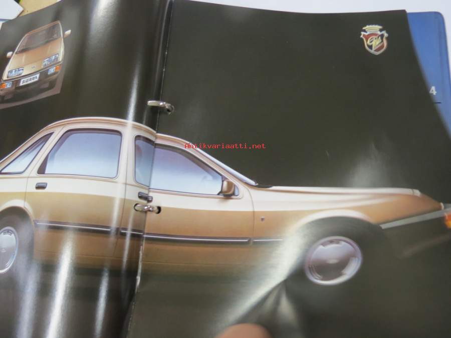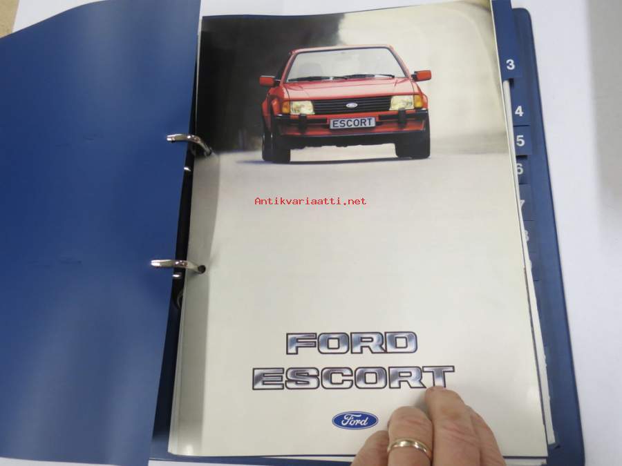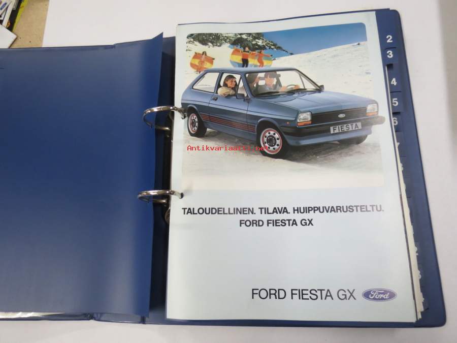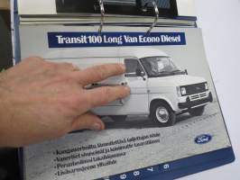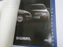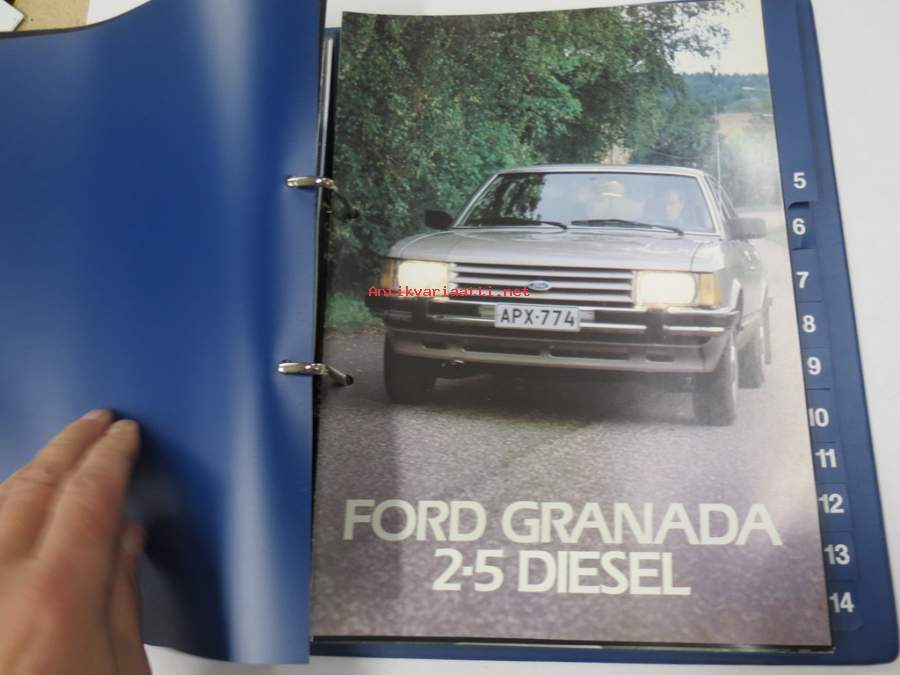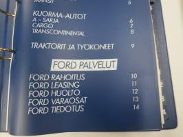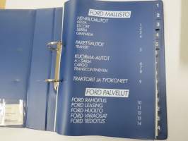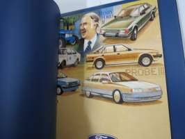 Ford 1982 mallisto -autonostajan kansio, jossa mallivuoden esitteet Fiesta, Escort, Sierra, Granada, Transit, A-sarja & Cargo kuorma-autot + 1700 traktori + muuta