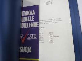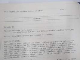 Volvo kuorma-autojen tekniset tiedot -kansio, sisältää myös tyyppikatsastustodistuksia, huoltotiedotuksia ym. ison määrän