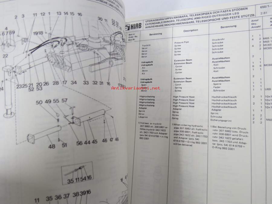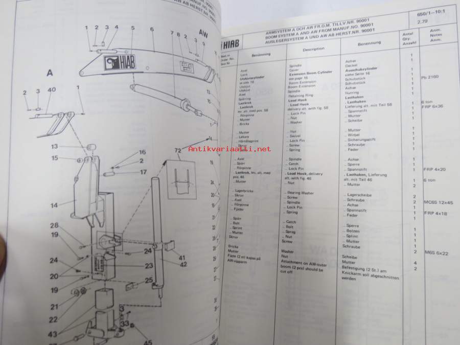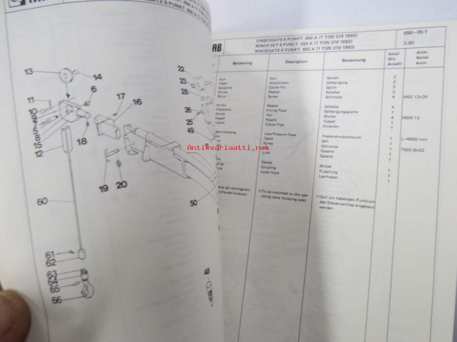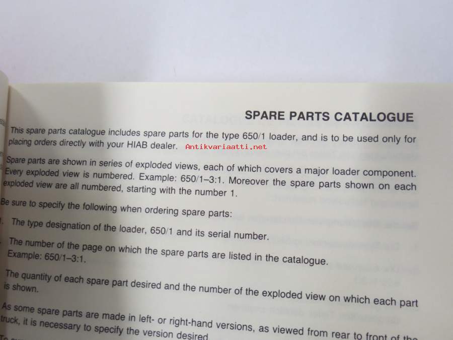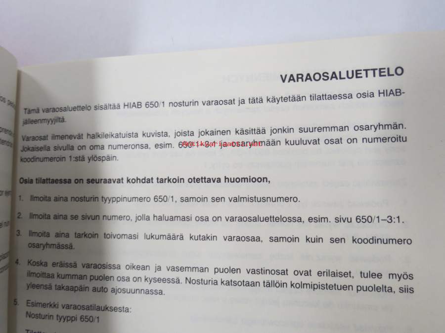 Hiab 650/1 -Reservdelskatalog / Spare Parts Catalogue / Ersatzteilkatalog -varaosaluettelo