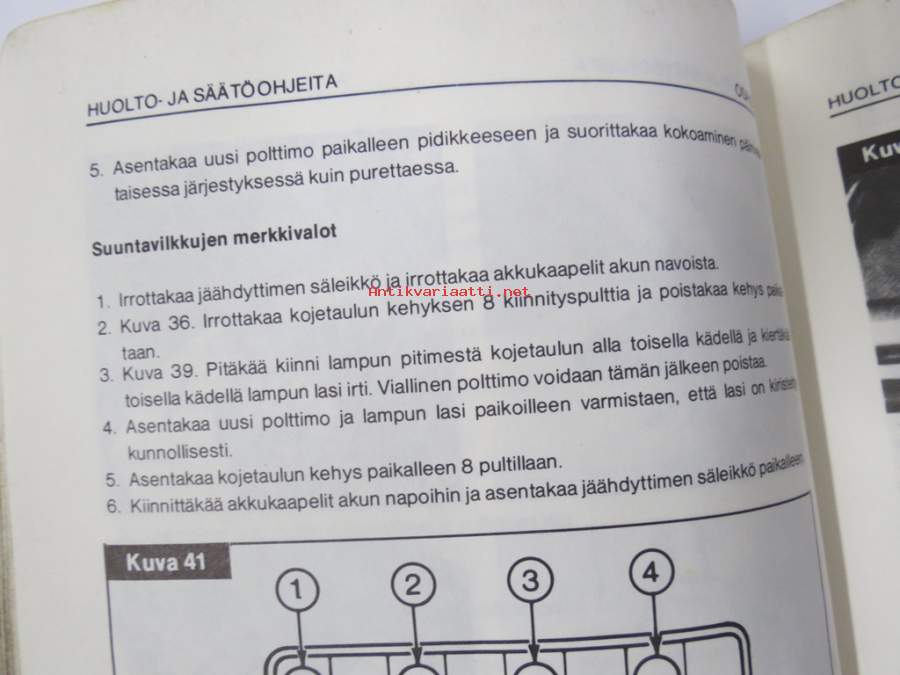 Mercedes-Benz asennusohje 1984 -henkilöautojen omatoimisen huollon, osien ja komponenttien tarkastusohjeiden, säätöjen yms. ohjekirja