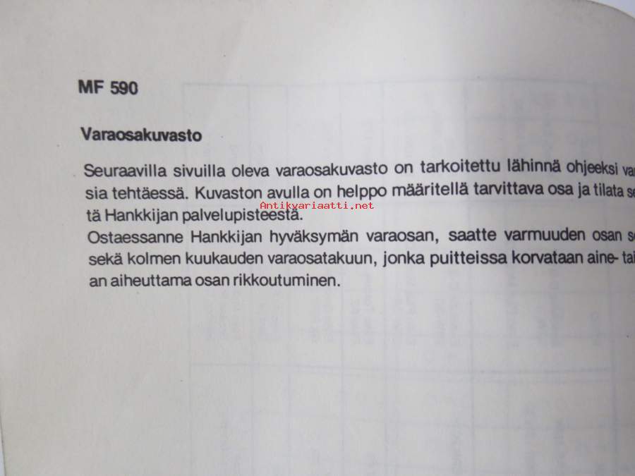 Massey Ferguson 590 traktori -käyttöohjekirja ja varaosakuvasto