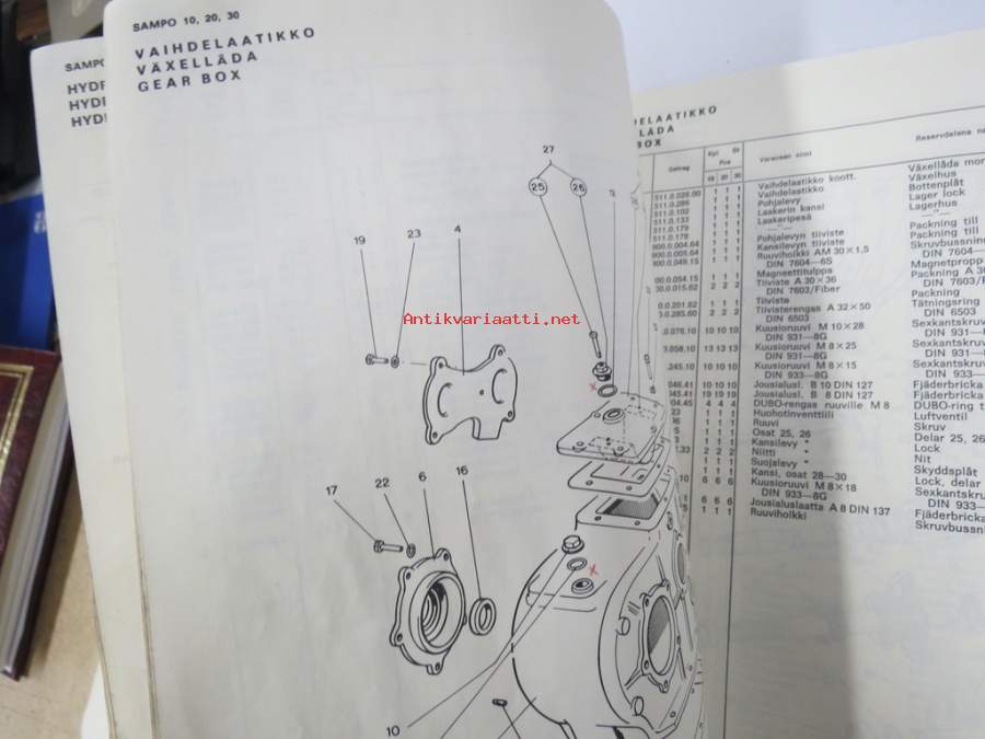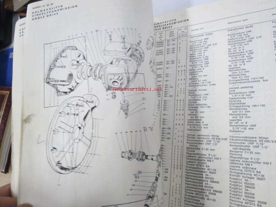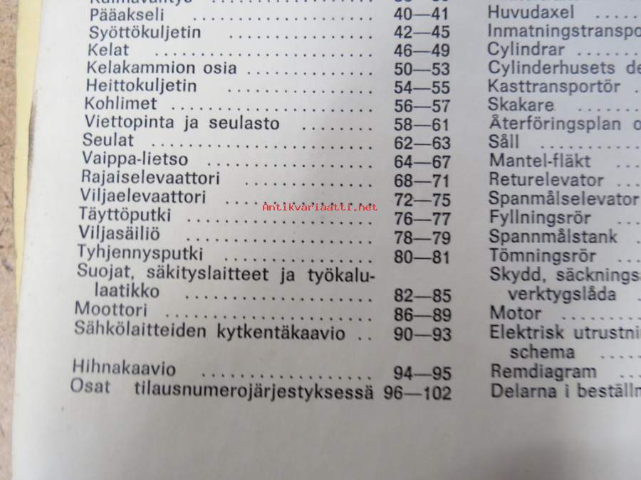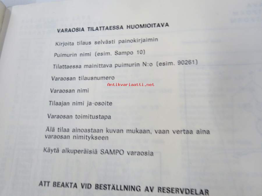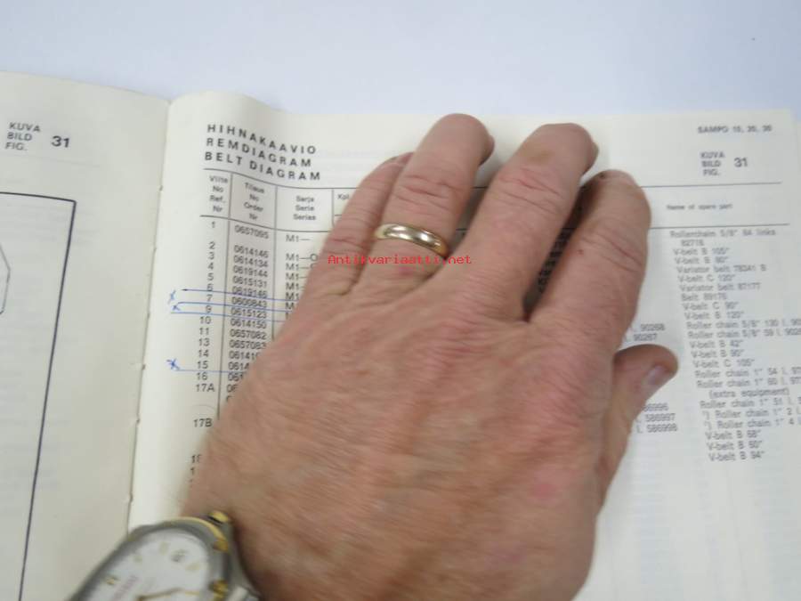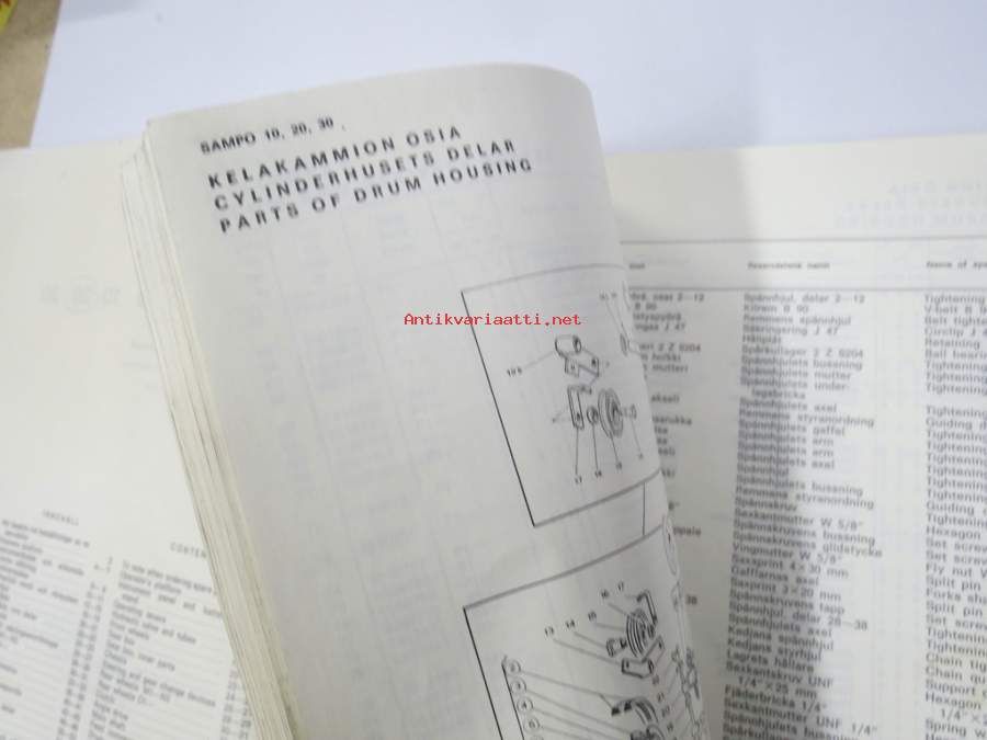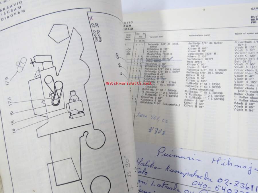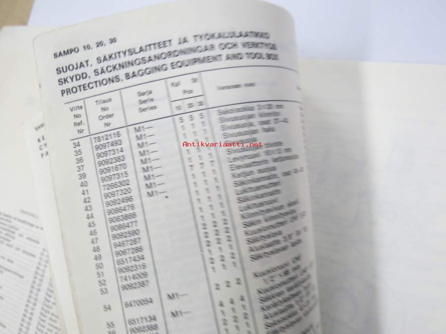 Sampo 10, 20, 30 (Rosenlew) ajopuimurit -varaosaluettelo, sisältää sähkökaaviot, hihnakaaviot
