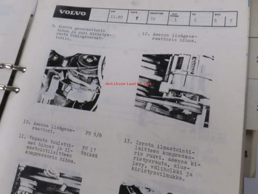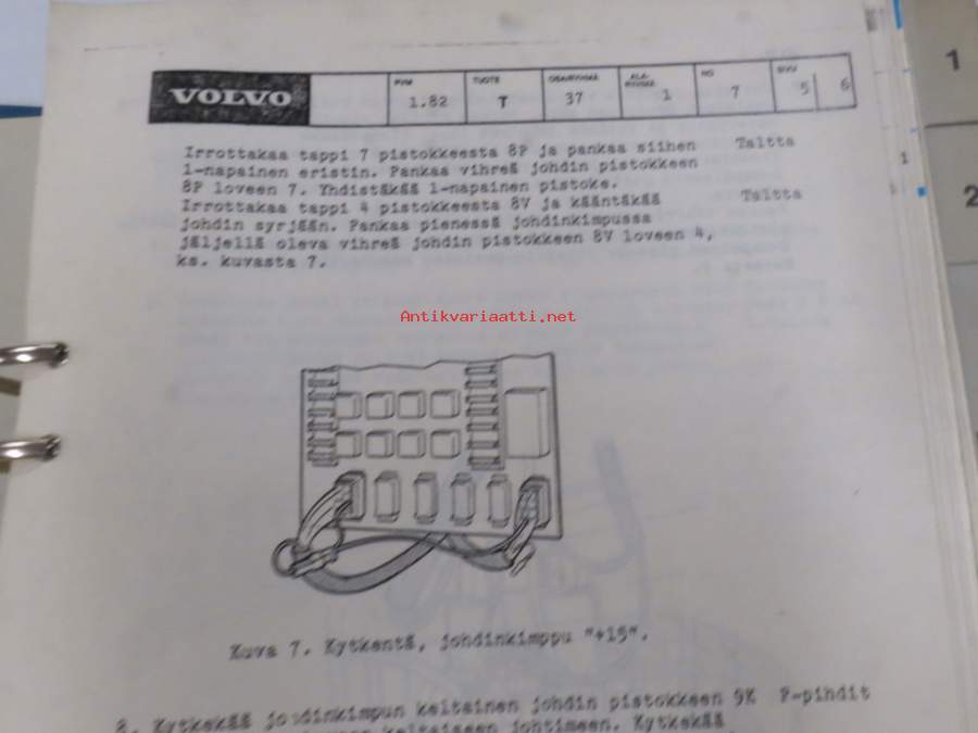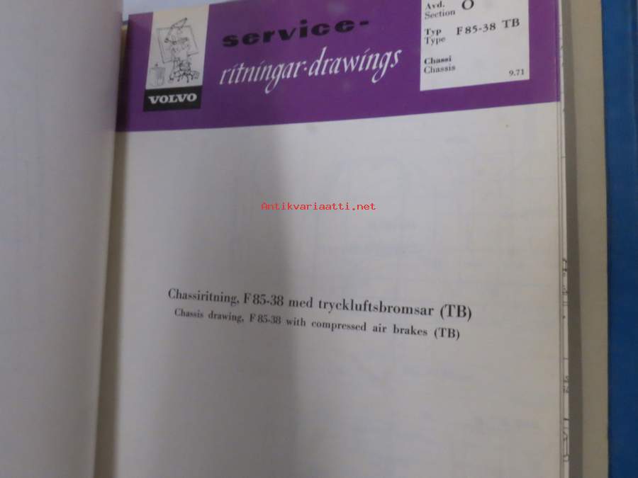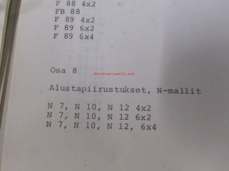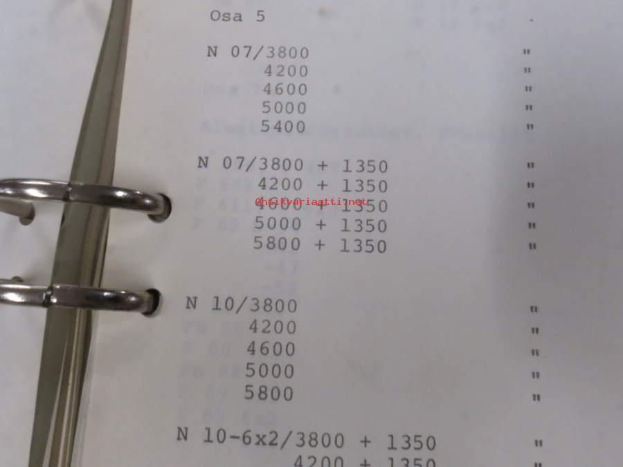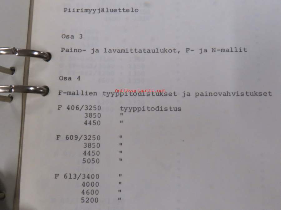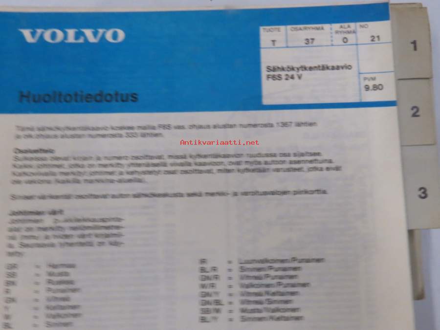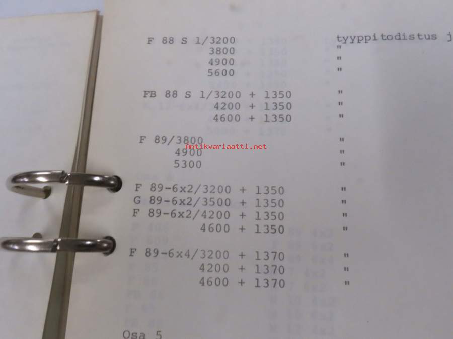 Volvo kuorma-autojen tekniset tiedot -kansio, sisältää myös tyyppikatsastustodistuksia, huoltotiedotuksia ym. ison määrän