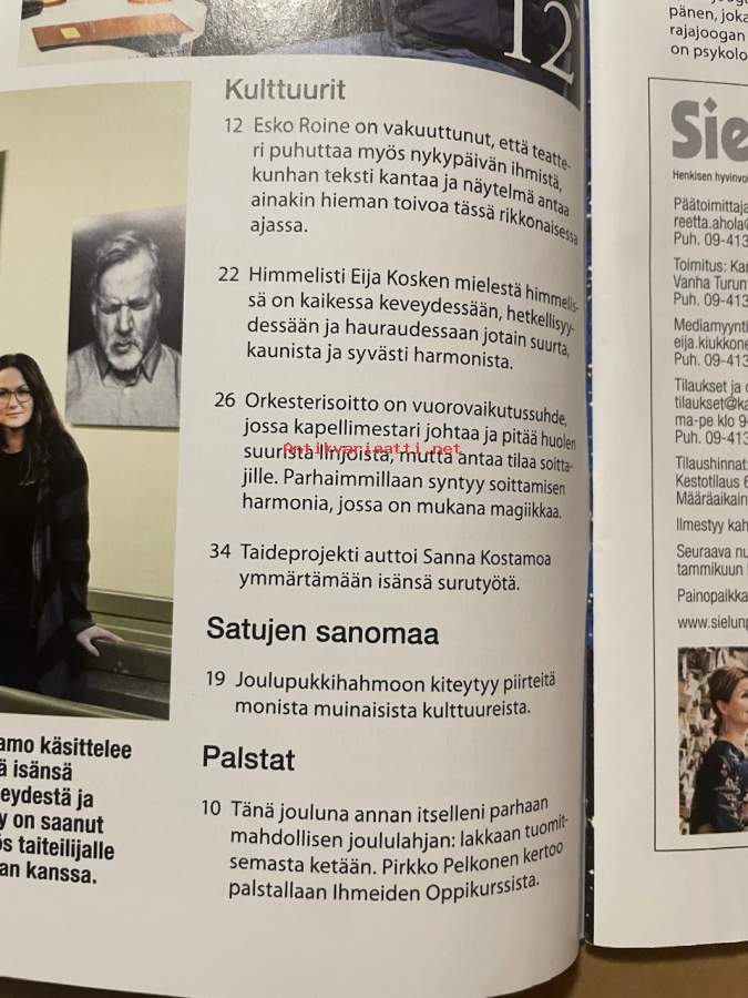 Sielunpeili 2017 nr 8, Aivokasvain, Esko Raine, Tarja Sahari, himmelin herkkyys, Kalevalainen meditaatio