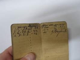 Maanviljelys- / karjanhoito- yms. muistikirja vuodelta 1922, sisältää merkintöjä tehdyistä töistä, muistiinpanoja eläinten sairauksista, joitakin piirroksia