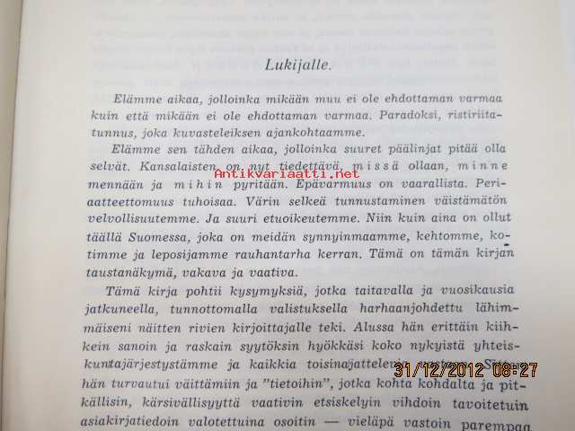 Saatavilla 1 kpl Julkaisuvuosi 1962 Sivuja 428 Painos 1. Kunto K3 Sidonta/painoasu Nidottu (pehmeäk.) Kielet Suomi