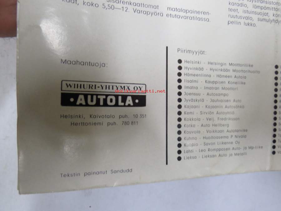 Москвич модель 407 Moskvitsh / Moskvits 407 -käyttöohjekirja, alkuperäinen auton mukana toimitettu