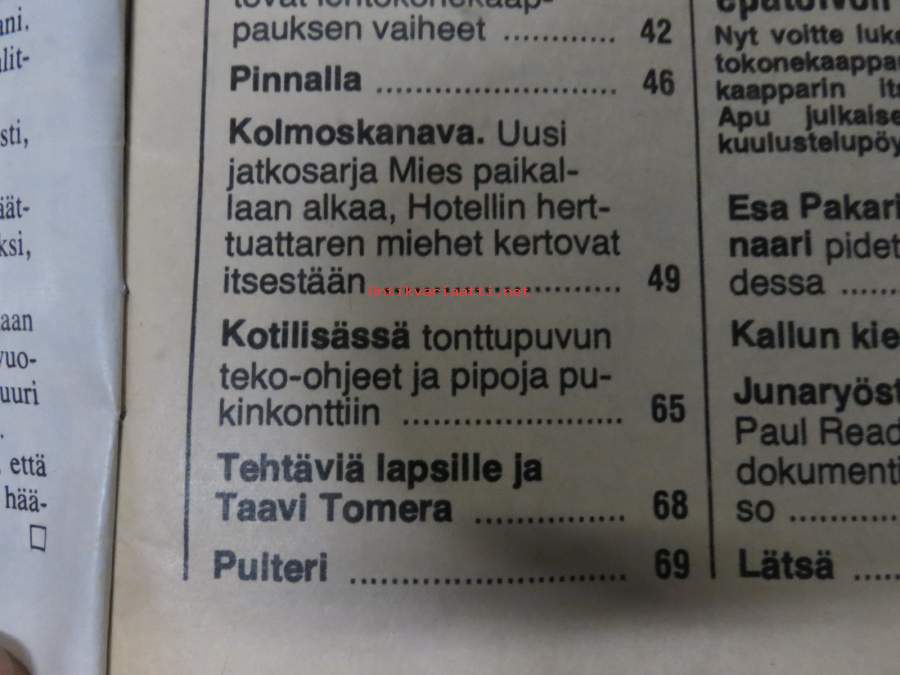 Kotiliesi 1986 nr 21 (7.11.), Sotalesket, sadan markan villat Ruoholahdessa, valaisimet Näytä
