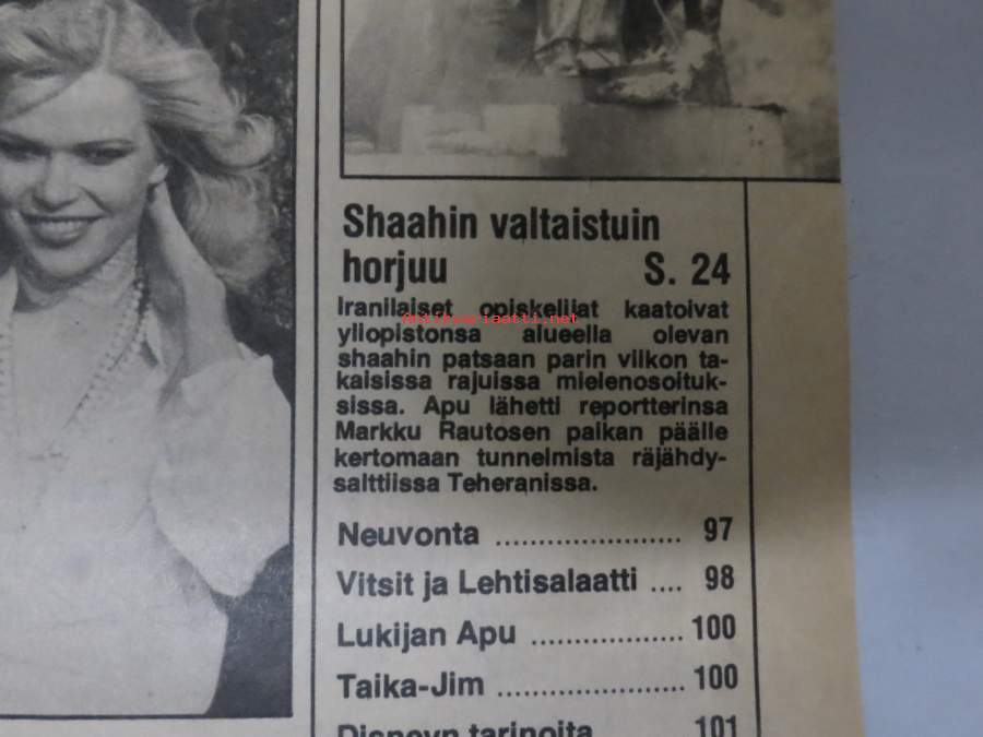 Apu 1978 nr 46, Iranin Shaahin kohtalon hetket, Virve Rosti & Jussi Tukia, Konekaappari Aarno Lamminparras, Kallio - Kill City - Jarkka 15 v kuoli jengitappelussa... Näytä