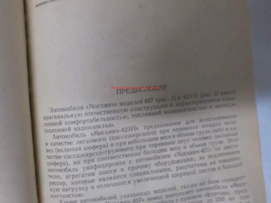 Москвич модель 407 Moskvitsh / Moskvits 407 -käyttöohjekirja, alkuperäinen auton mukana toimitettu