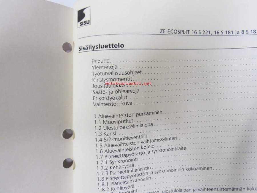 Sisu kuorma-autot - Huolto-ohje - ZF Ecosplit-vaihteistot 16 S 221, 16 S 181, 8 S 181 -korjaamokirjasarjan osa