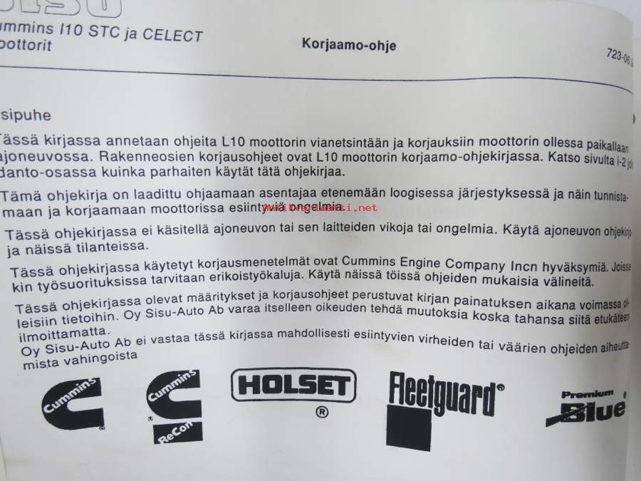 Sisu kuorma-autot - Huolto-ohje - L-10 Celect ja STC moottorien korjaamo-opas -korjaamokirjasarjan osa