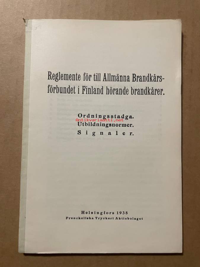 Reglente för till Allmänna Brandkårsförbundet i Finland hörande brandkårer Ordningsstadga, Utbildningsnormer, Signaler