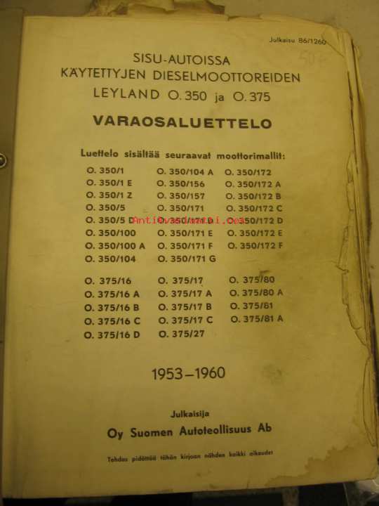 Leyland 0350 0375 1953-1960 Spare parts list varaosaluettelo