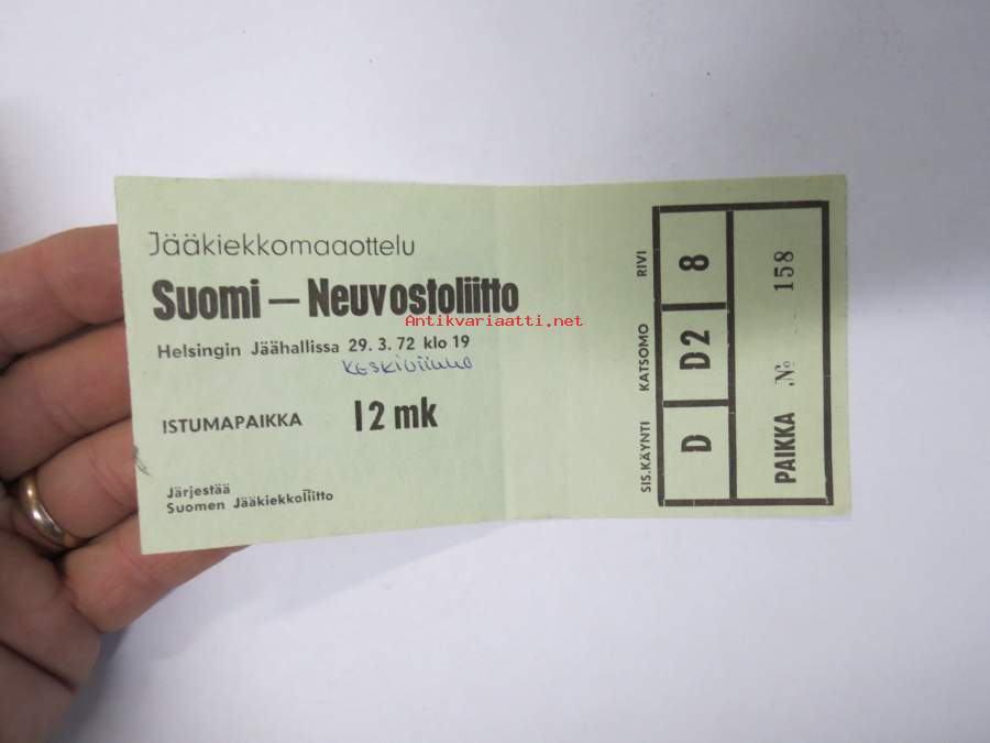 Jääkiekkkomaaottelu Suomi - Neuvostoliitto, Helsingin Jäähalli, 29.3.1972 -pääsylippu