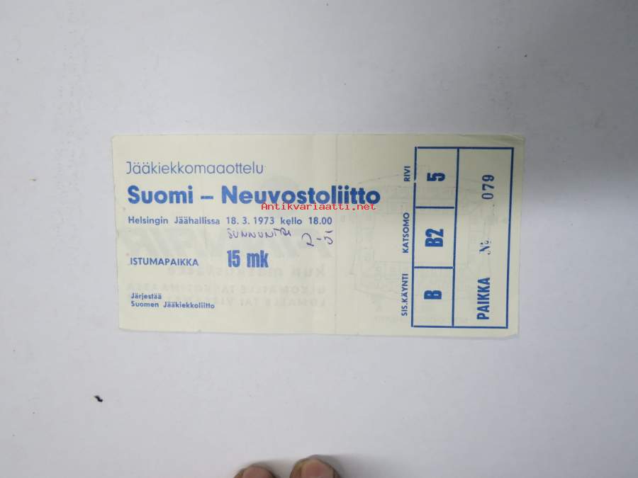 Jääkiekkkomaaottelu Suomi - Neuvostoliitto, Helsingin Jäähalli, 18.3.1973 -pääsylippu