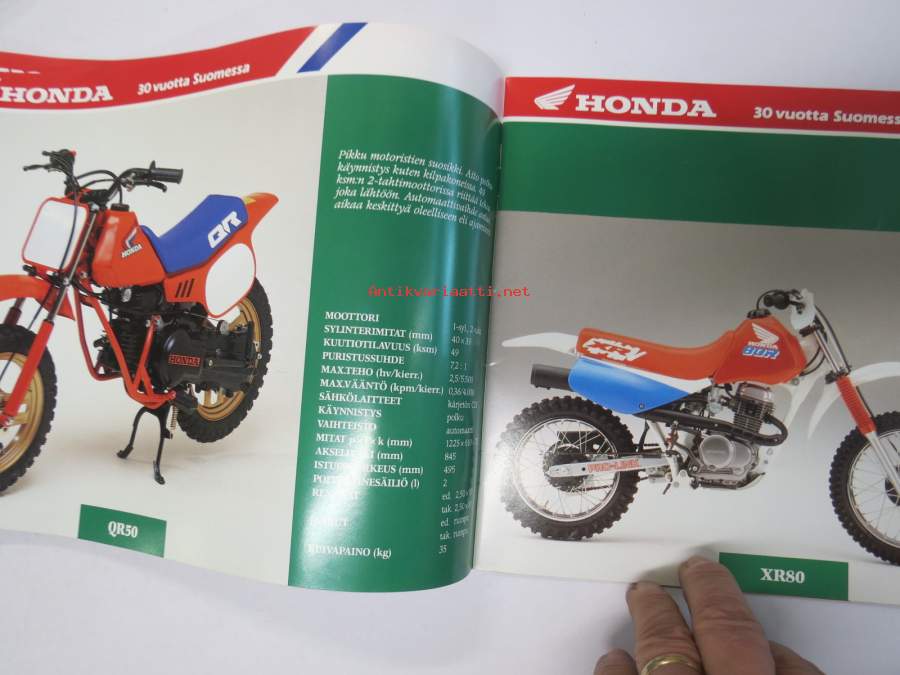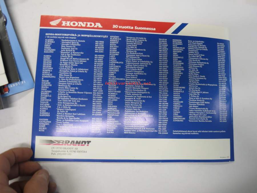 Honda 1990 moottoripyörät - Honda 30 vuotta Suomessa -myyntiesite