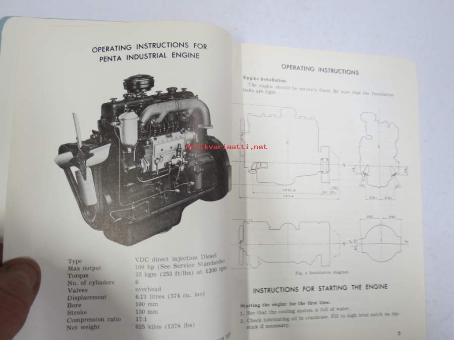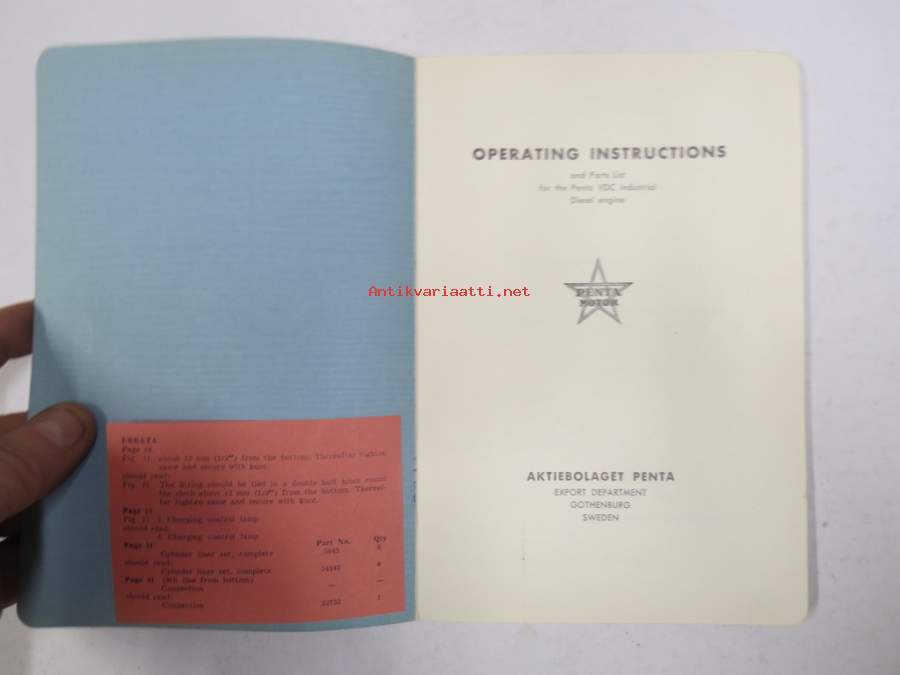 Penta VDC Industrial Diesel Engine - Operating Instructions and Parts List -käyttöohje ja varaosaluettelo