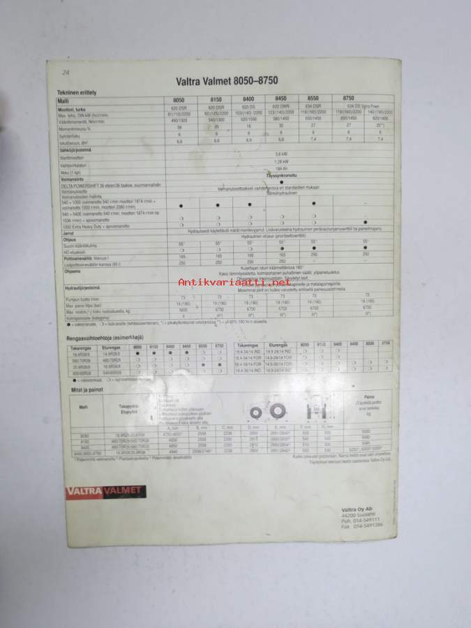 Valtra Valmet 8050, 8150, 8400, 8450, 8550, 8750 traktori -myyntiesite