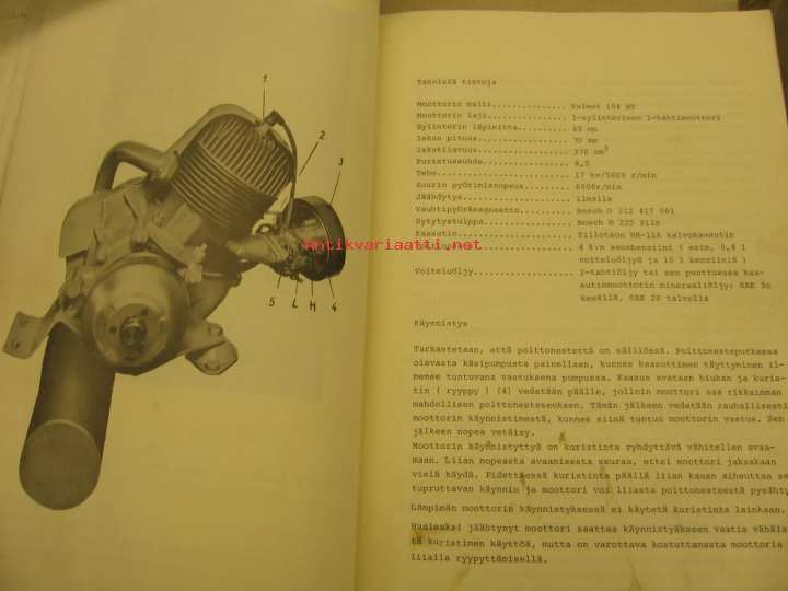 Oy Metaxo Ltd, 19Melko harvinaisen pelin alkuperäinen käyttöohje ja varaosaluettelo, koneena ollut Valmet 104 BT.