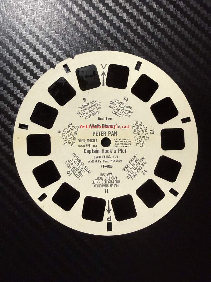 Myynnissä alkuperäinen Walt Disney’s Peter Pan – View-Master -kuvakiekkosarja, joka koostuu kolmesta eri kiekosta. Kiekot muodostavat yhtenäisen tarinakokonaisuuden elokuvasta Peter Pan.