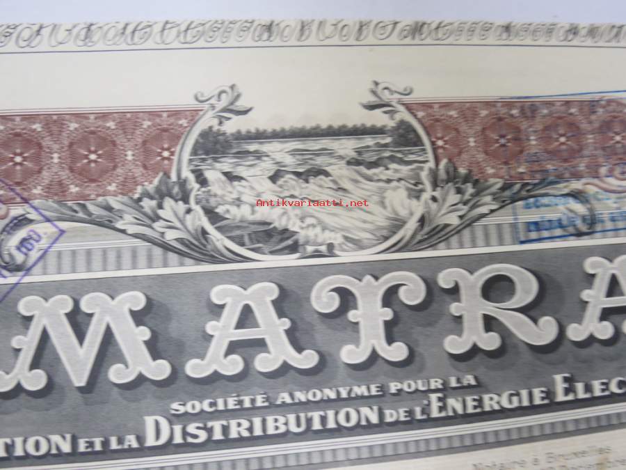 Imatra Sociéte Anonyme pour la Production et la Distribution de lÉnergie Electrique - Action ordinarie, nr 026036 -osakekirja / share certificate