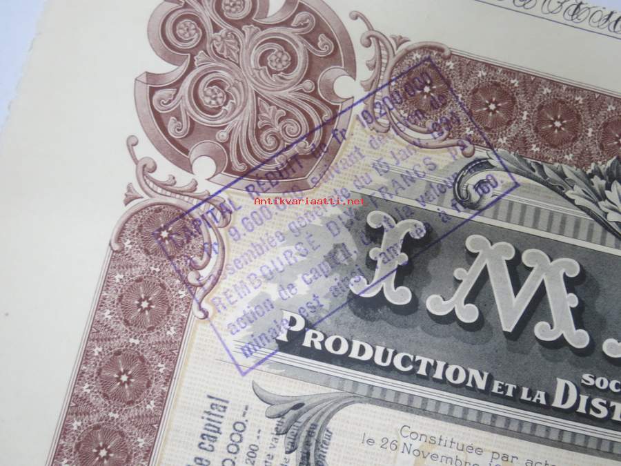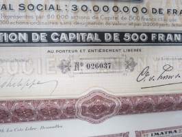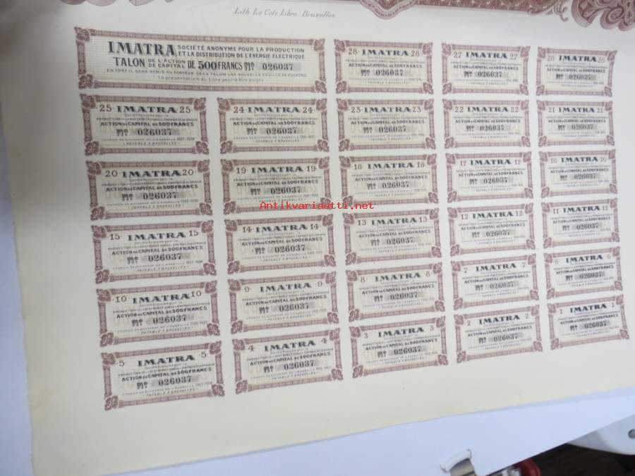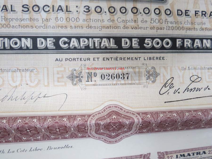Imatra Sociéte Anonyme pour la Production et la Distribution de lÉnergie Electrique - Action ordinarie, nr 026037 -osakekirja / share certificate
