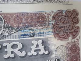 Suomen Gummitehdas Osakeyhtiö (Nokia) osakekirja - aktiebrev 5 osaketta á 200 Smk - å 5 aktier á 200 Fmk, 5 000 mk, Helsinki 1935, blanco, makuleras -merkitty