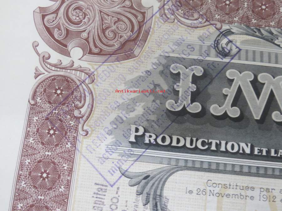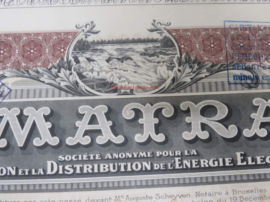 Imatra Sociéte Anonyme pour la Production et la Distribution de lÉnergie Electrique - Action ordinarie, nr 026036 -osakekirja / share certificate