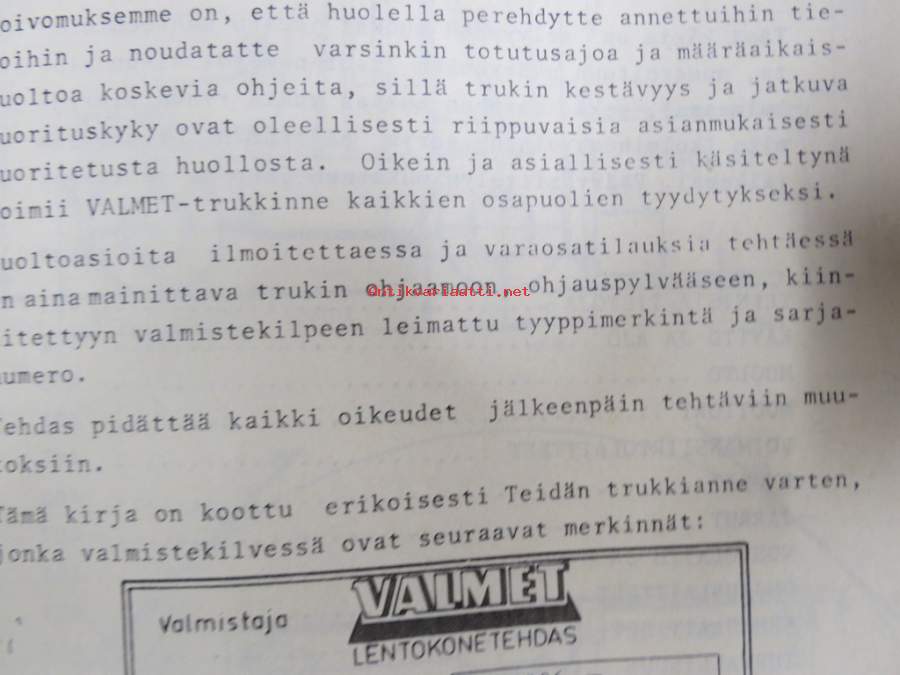 Valmet 502 käyttö ja hoito -käyttöohjekirja / instruction book in finnish