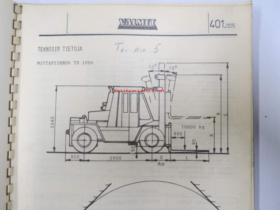 Valmet haarukkatrukki TD1006A (Perkins 6.354 moottorilla) - käyttö ja huolto / operator´s manual in finnish