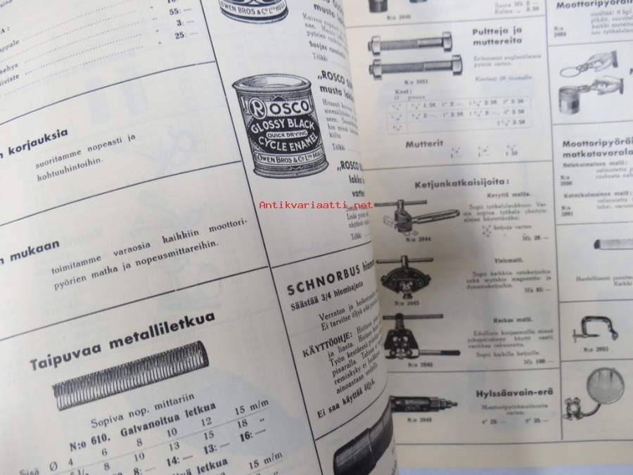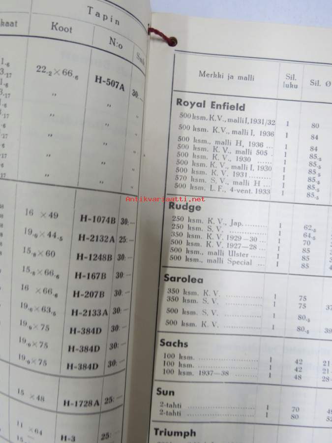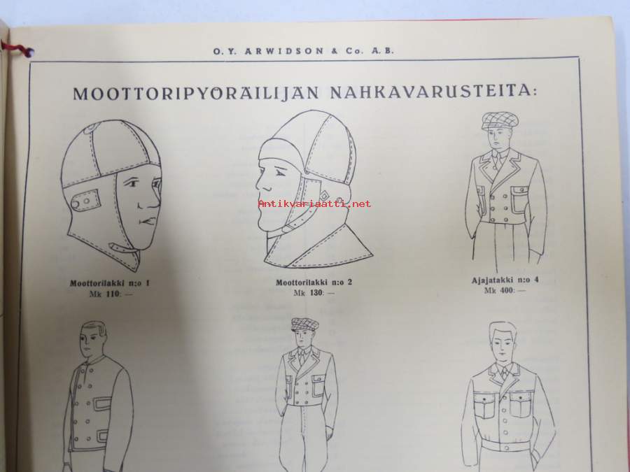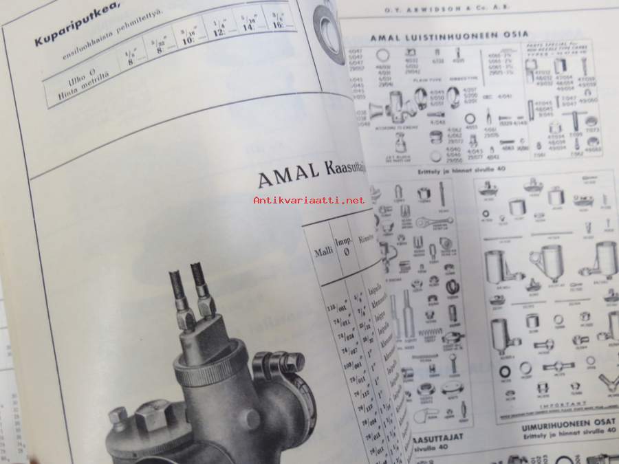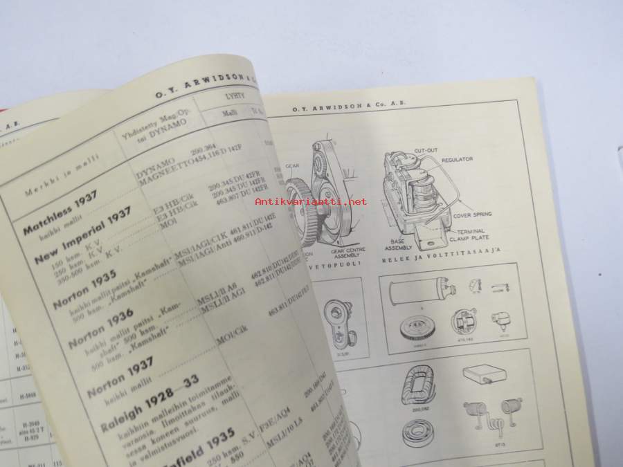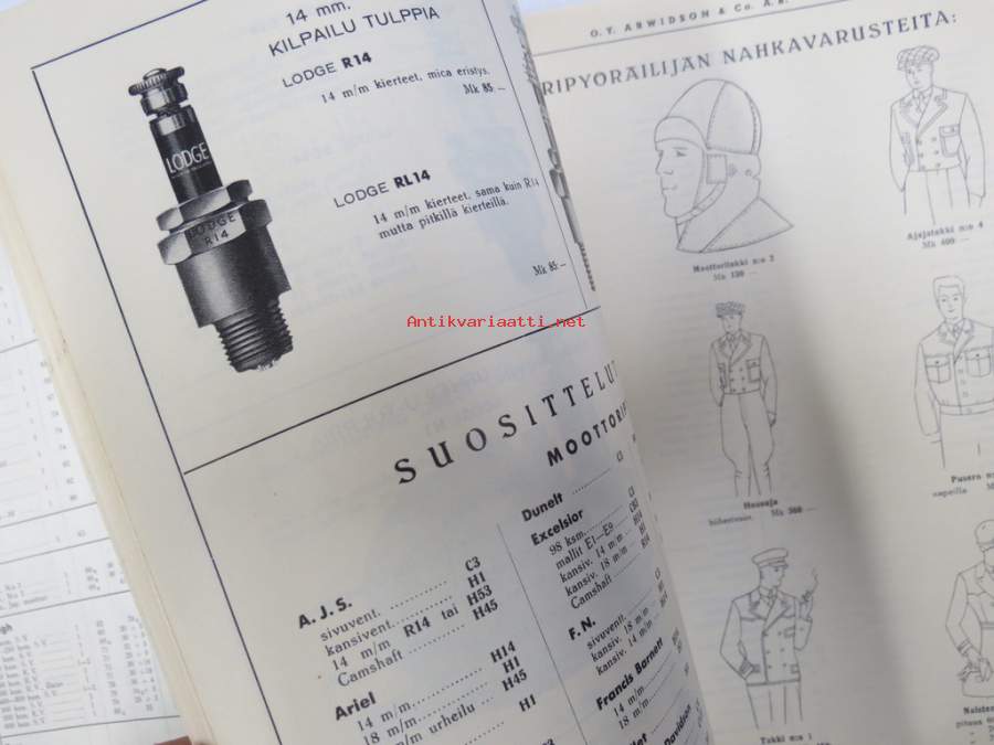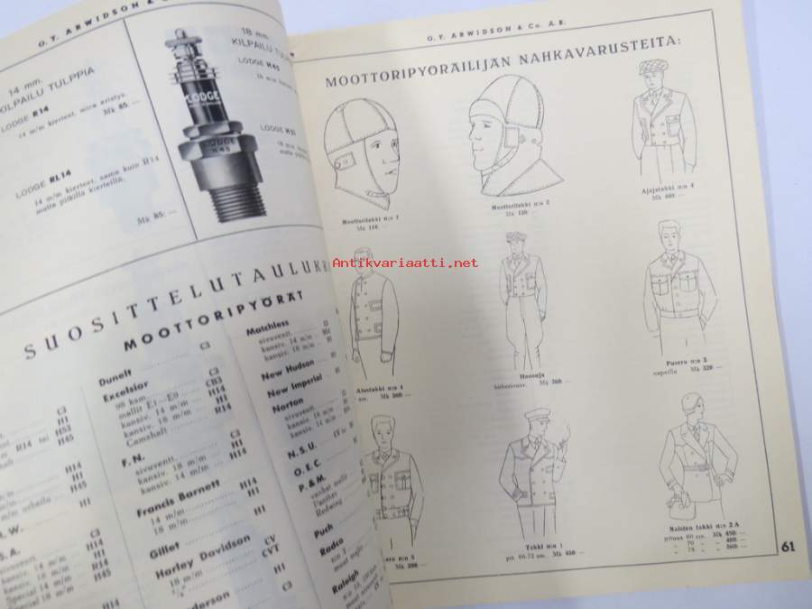 Moottoripyörien varaosia ja tarvikkeita 1939 Oy Arwidson Ab -hieno kuvitettu luettelo