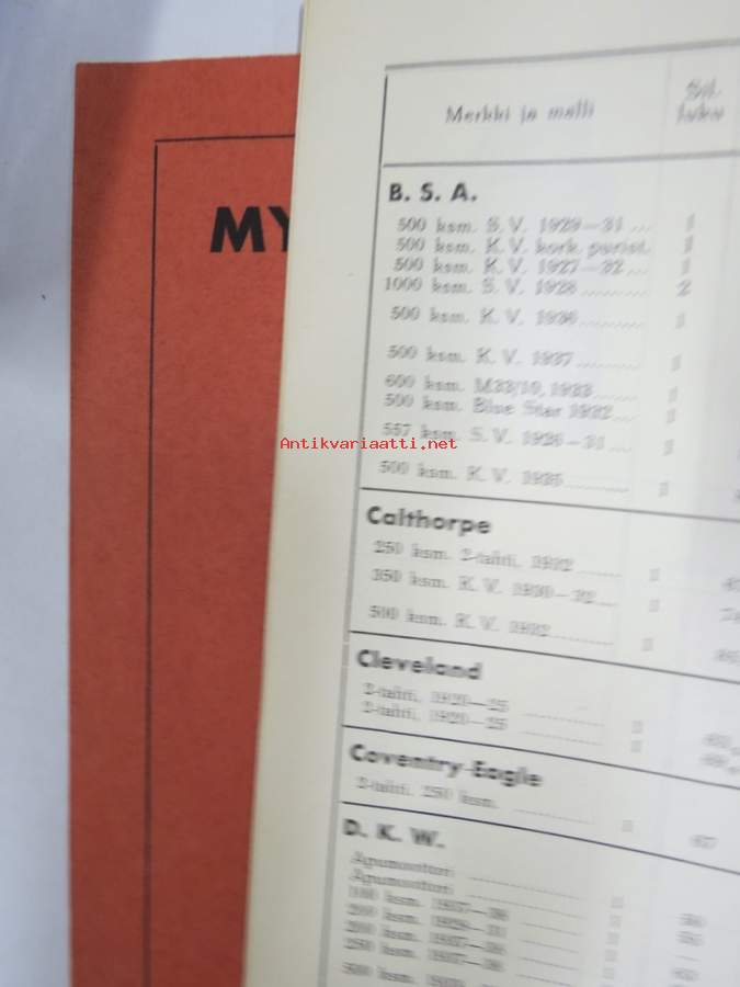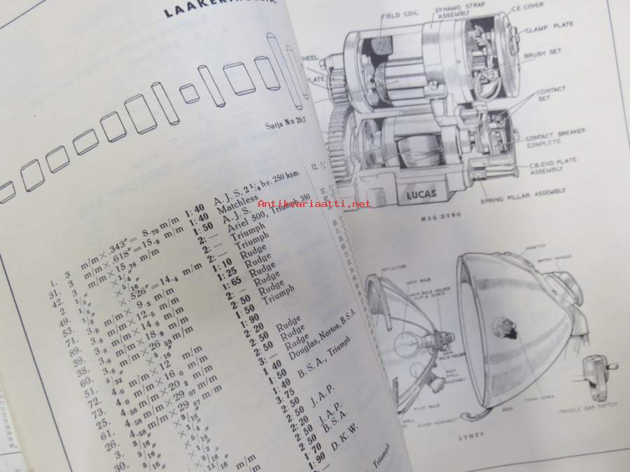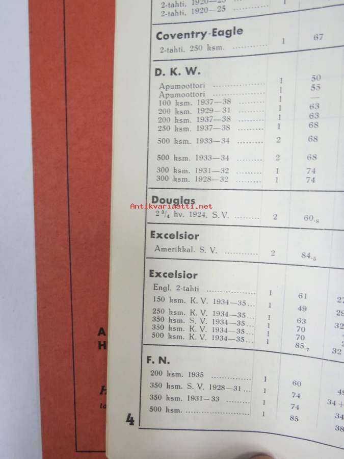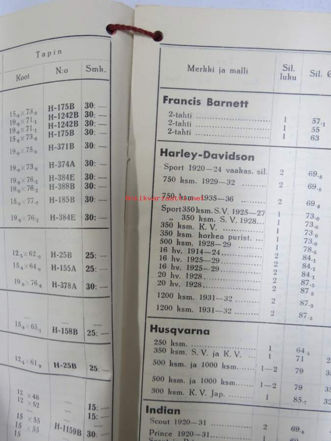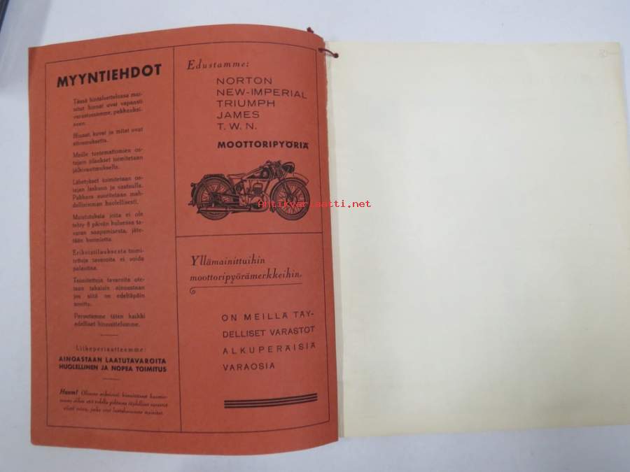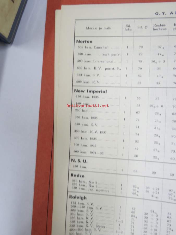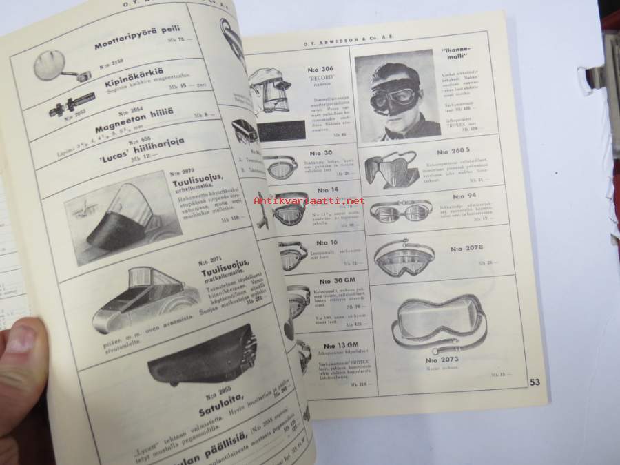 Moottoripyörien varaosia ja tarvikkeita 1939 Oy Arwidson Ab -hieno kuvitettu luettelo