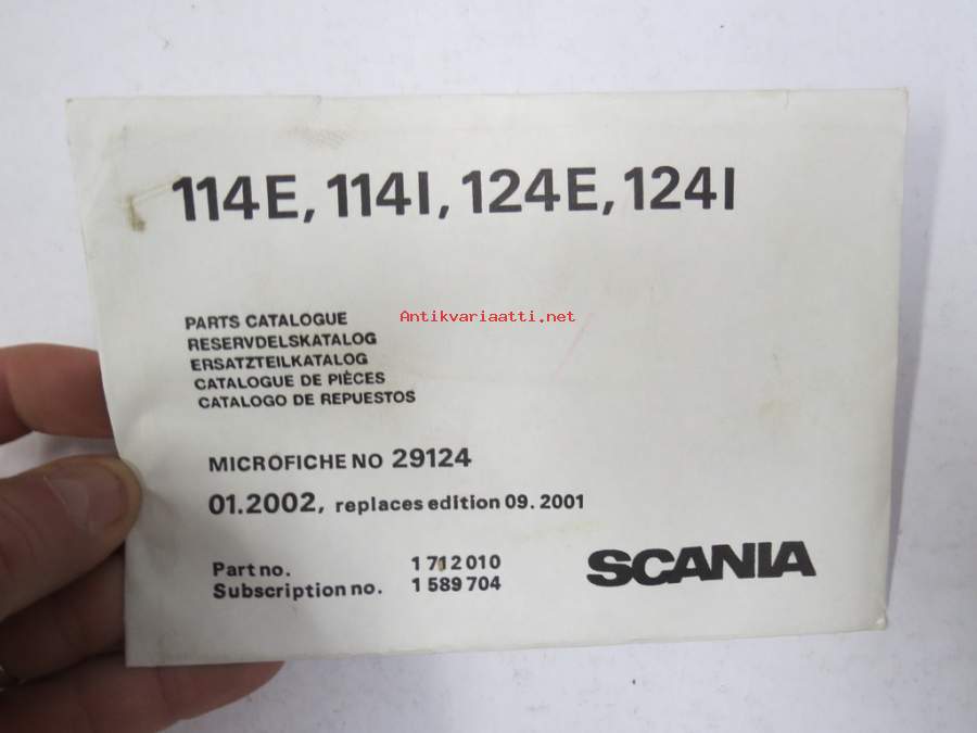 Scania 114E, 114I, 124E, 124I Parts Catalogue - Reservdelskatalog - Ersatzteilkatalog - Catalogue de Piéces - Microfiche nr 29124, 01.2002 mikrofilmi