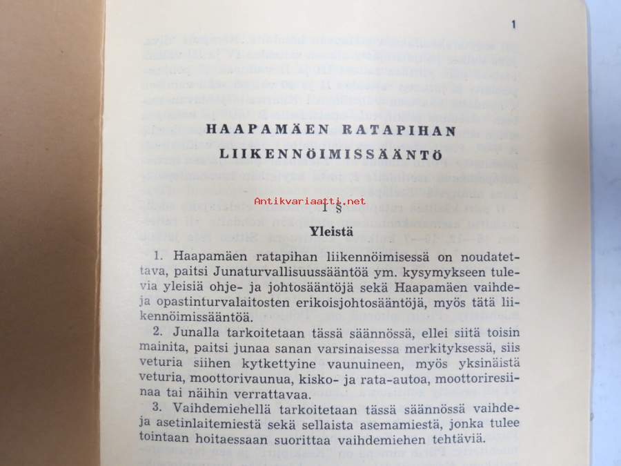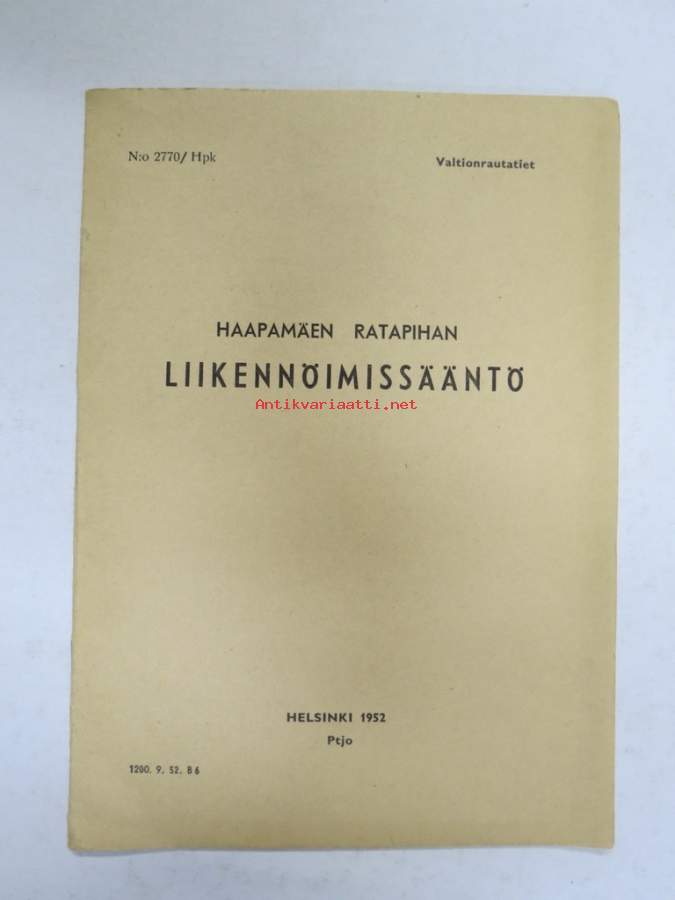 Haapamäen ratapihan liikennöimissääntö - Valtionrautatiet 1952