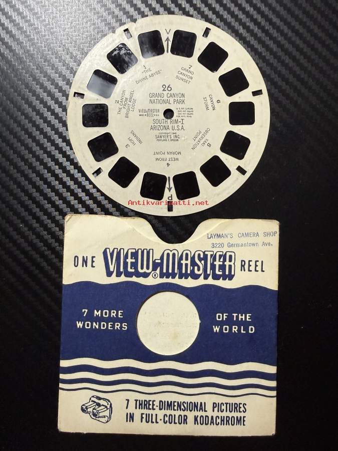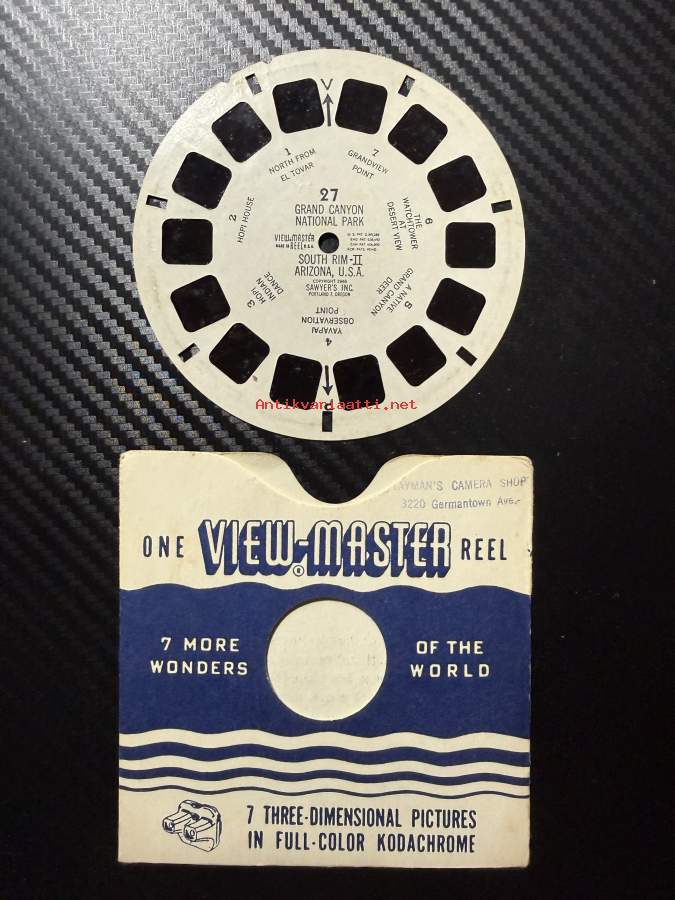 View-Master 26 – Grand Canyon National Park – South Rim I ja myös kiekko II nro 27 -reel / kuvakiekko