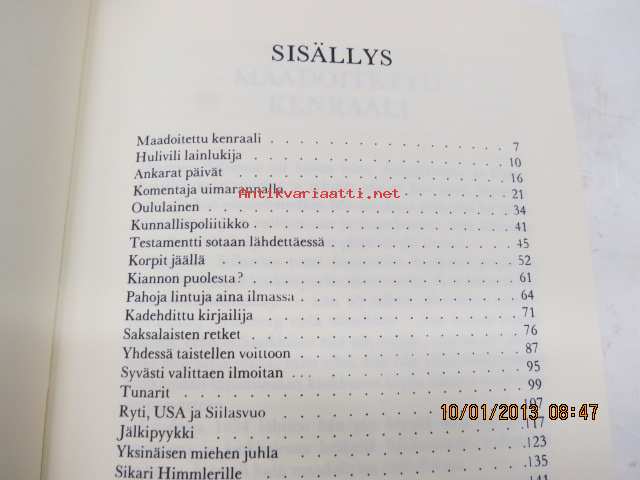 Saatavilla 1 kpl Julkaisuvuosi 1984 Sivuja 223 Painos 1. Kunto K3 Sidonta/painoasu Sidottu (kansipaperit) ISBN 951-1-08040-7 Kielet Suomi