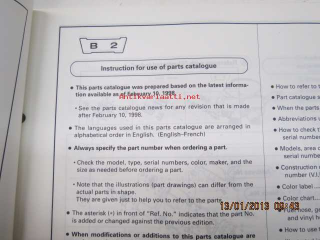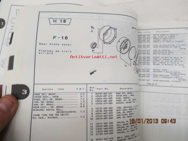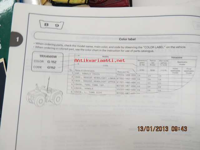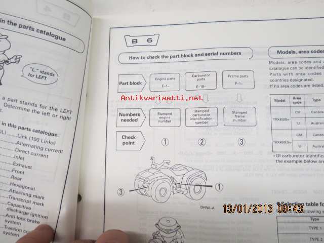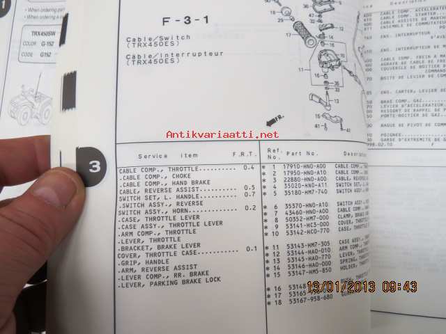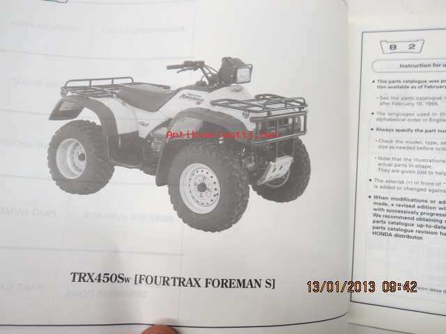Honda TRX450Sw (Fourtrax Foreman S), TRX450ESw (Fourtrax Foreman ES) Parts Catalogue -varaosaluettelo