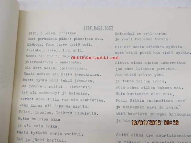 21 x 30 cm. Riihimäen Silkki, Sorjatar (Pori). Tavaratalo Turussa Eerikinkatu 15.