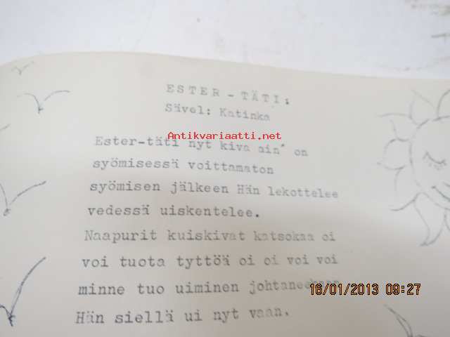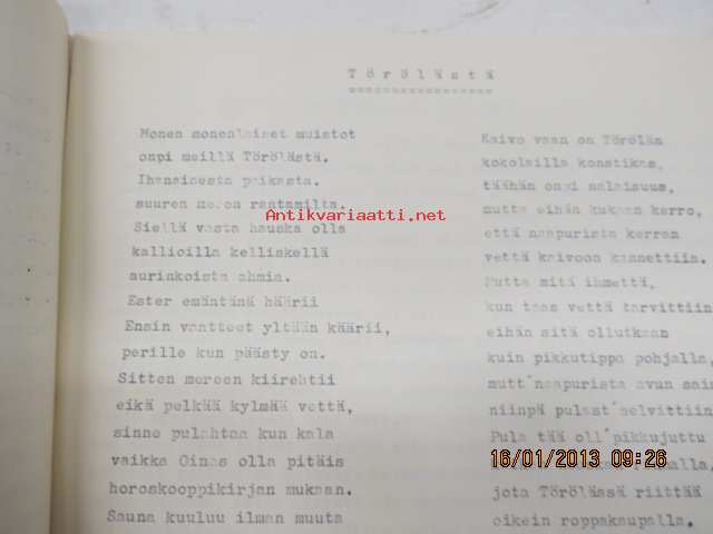 Törö 50 vuotta -monistettu lehti, jossa elämäkerrallisia piirteitä, lauluja, runoja ym. -Ester Törnroosin syntymäpäivän kunniaksi tehty. Työssä ja