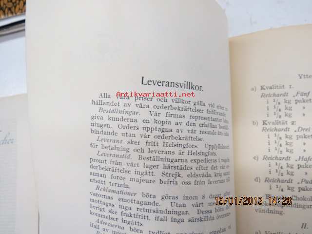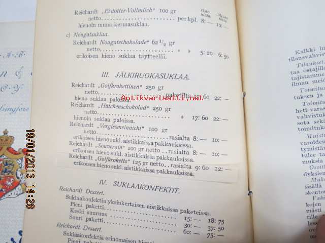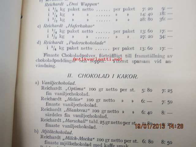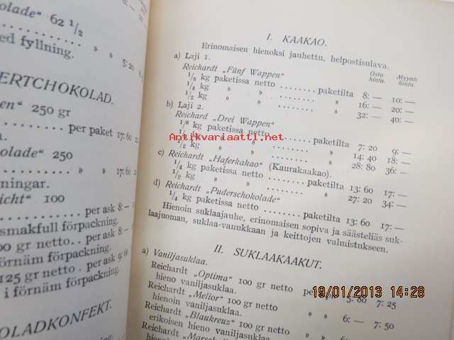 Ab Timmann & Fischer Oy Helsingfors / Helsinki -suklaan ja kaakaon tukkuluettelo (Reichardt)