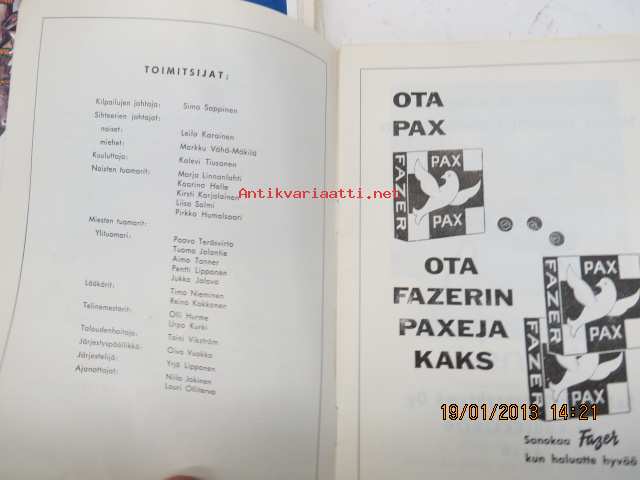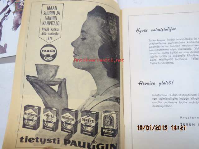 Suomen voimistelumestaruuskilpailut ja 1. olympiakatsastus miesten A- ja naisten B-sarja 4-5.4.1964 Turku -käsiohjelma