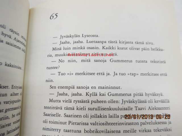 Saatavilla 1 kpl Julkaisuvuosi 1975 Sivuja 295 Painos 1. Kunto K3 Sidonta/painoasu Sidottu (kansipaperit) ISBN 951-0-07282-6 Kielet Suomi