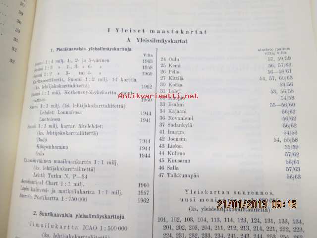 Maanmittaushallituksen karttaluettelo 31.10.1963
