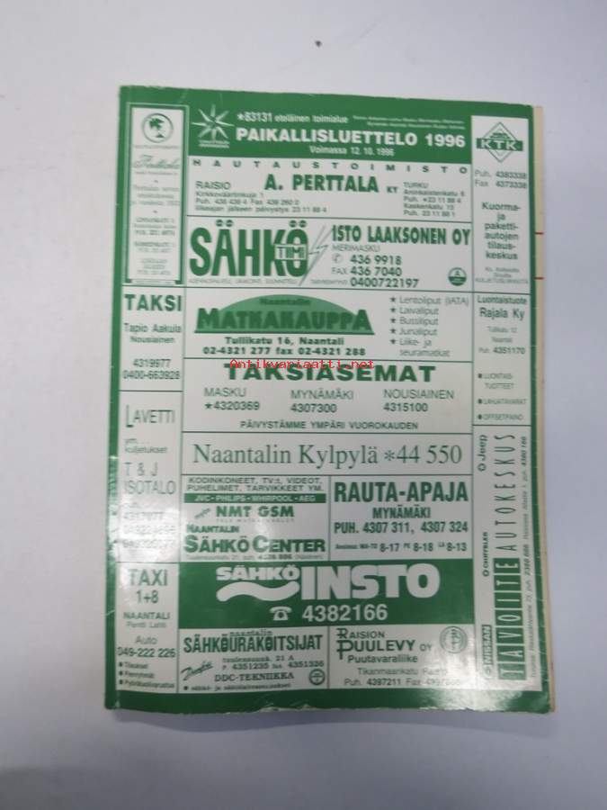 Paikallisluettelo 1996 Raisio - Askainen - Lemu - Masku - Merimasku - Mietoinen - Mynämäki - Naantali - Nousiainen - Rusko - Vehmaa -puhelinluettelo